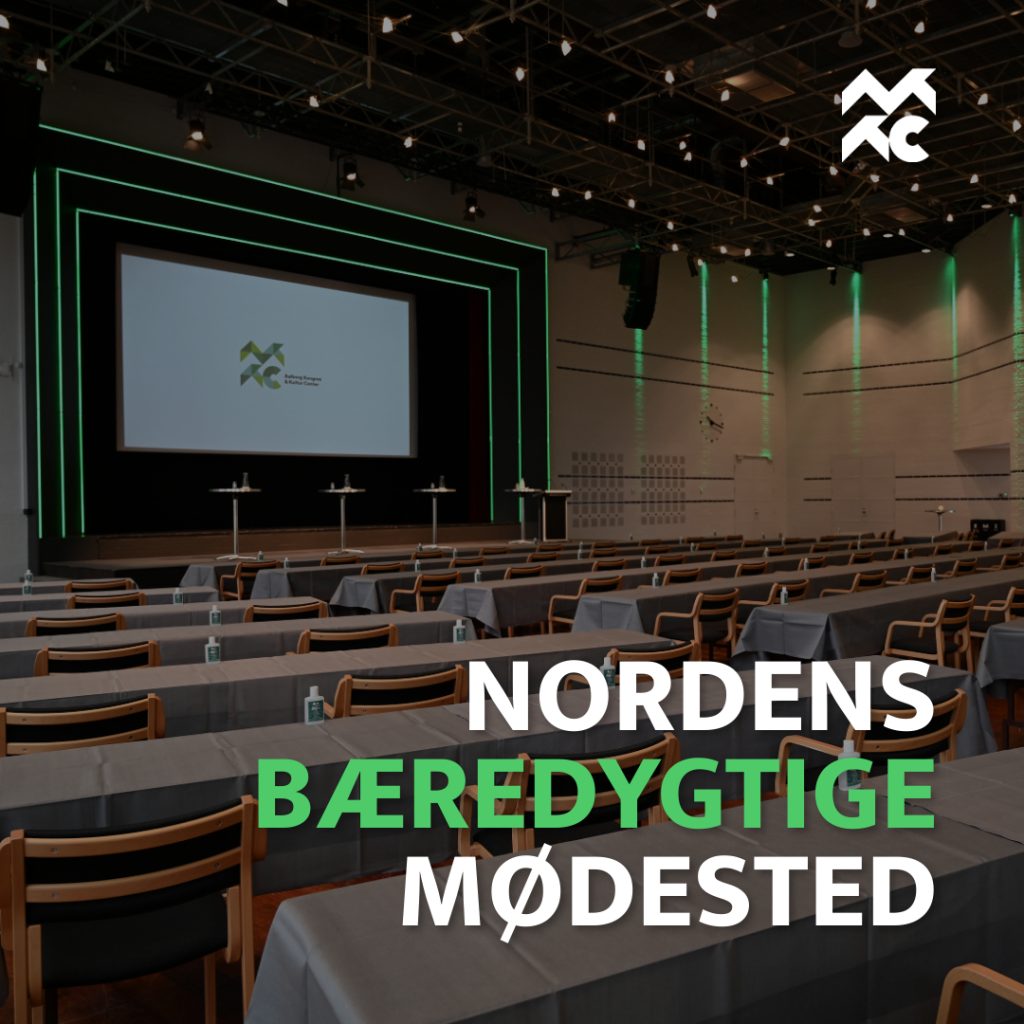 Konferencelokalet som baggrundsbillede er relevant og giver et visuelt indtryk af, hvad man kan forvente hos AKKC. Samlet set giver annoncen et indtryk af AKKC som en pålidelig og bæredygtig leverandør af møde- og kongresfaciliteter.