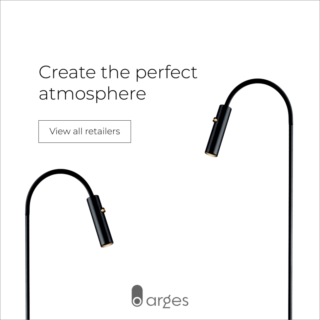 Brugen af en helt hvid baggrund og fritlagte billeder af lampen giver et minimalistisk og elegant udseende til denne annonce. Den tiltaler et publikum, der går op i kvalitet, og som er tilhænger af nordisk minimalisme.