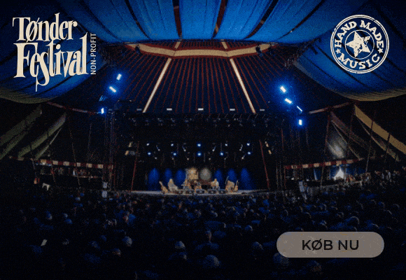 Annoncen bruger et billede fra festivalen, som skaber genkendelighed hos tidligere Tønder Festival-deltagere og forventning hos nye. Det motiverer folk til at deltage.