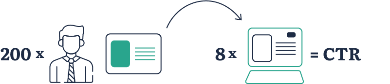 Et godt eksempel kan være, at der er 200 Google-brugere, der får vist din side igennem deres søgninger. Det vil sige, at der potentielt er 200 brugere, der kunne klikke sig ind på din hjemmeside. Af de brugere er der otte, der klikker på dit site frem for en af de andre sites, de får vist.