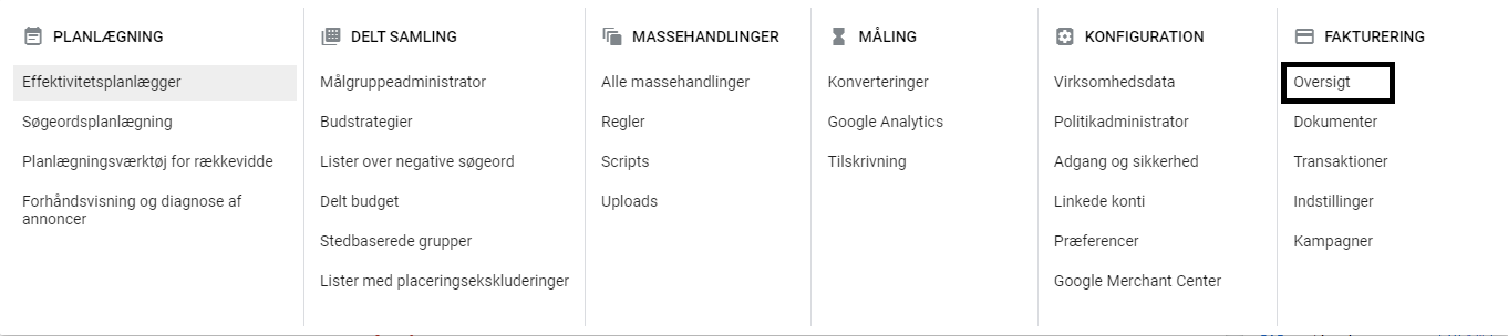 3.Klik på Oversigt under Fakturering menupunktet